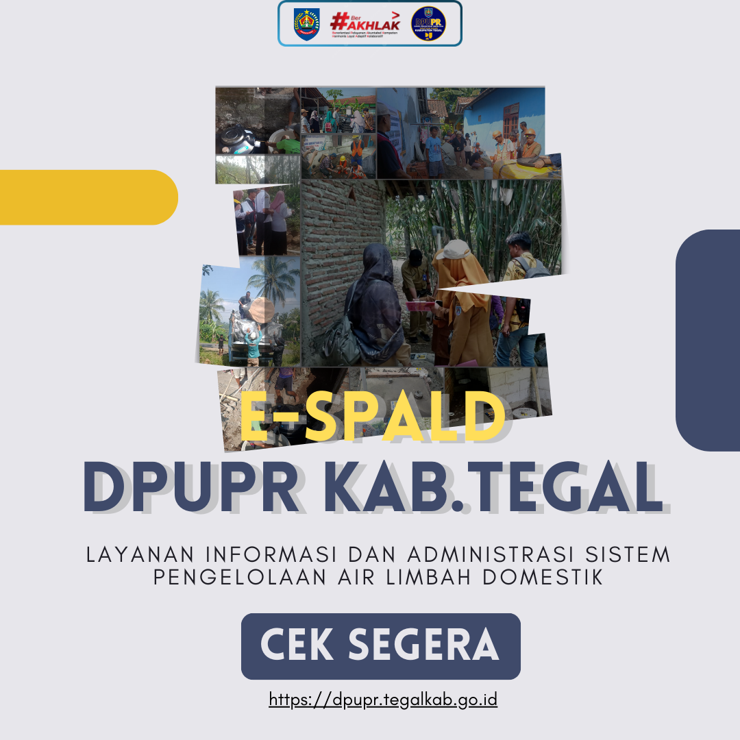 Sebagai wujud inovasi pelayanan publik, Pemerintah Kabupaten Tegal melalui Dinas Pekerjaan Umum dan Penataan Ruang mengembangkan e-SPALD (Elektronik Sistem Pengelolaan Air Limbah Domestik). Aplikasi ini hadir untuk memberikan kemudahan bagi masyarakat maupun instansi terkait dalam mengakses layanan sanitasi secara transparan, cepat, dan akuntabel.